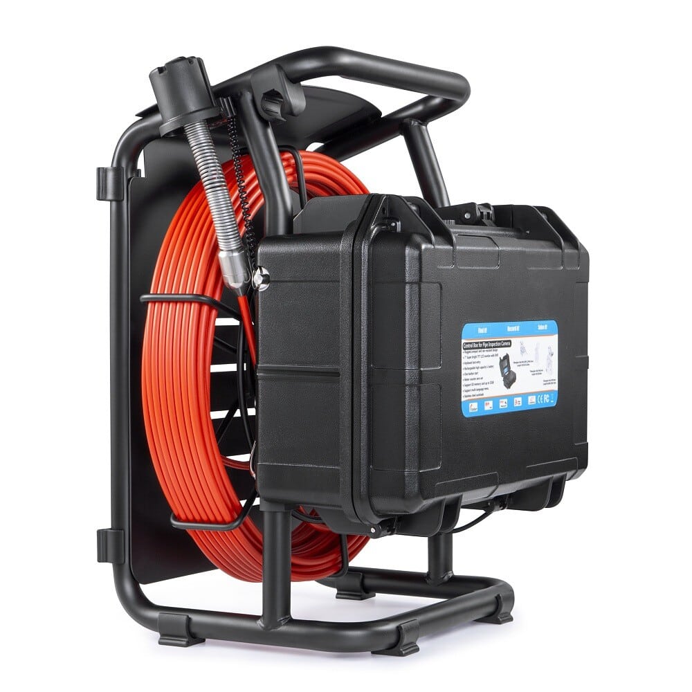 Kompaktní robustní kamera do potrubí oprůměru 50-150mm. Ideánlní univerzál pro většinu situací inspekce domovního a bytového potrubí. Kamerová hlava s fullHD rozlišením nabídne již skvělý obraz. Vhodná pro ispekci potrubí od umyvadel, dřezů, pisoárů, záchodů apod až po domovní potrubí do 150mm. Navíjecí buben s 30m tlačným kabelem je uložen v pevném ocelovém koši, ten je uložen v kvalitním rámu. Zobrazovací montor je v kompaktním kufru (odnímatelný) včetně náhledového monitoru o úhlopříčce 10″, slotu pro paměťovou kartu nebo USB klíč. Součástí je i klávesnice pro editaci textu do záznamu kamery. Zařízení je vybaveno akumulátorem pro cca 5-6 hod provoz